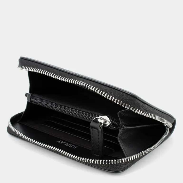 Dai un tocco di lusso pratico al tuo stile quotidiano con il portafoglio REPLAY. Realizzato con cura in pregiata pelle nera, questo accessorio è un must-have per ogni donna moderna. Il suo design elegante è impreziosito da un logo metallico che conferisce un sofisticato tocco finale. Le dimensioni compatte di 11 cm di altezza, 15 cm di lunghezza e 2 cm di ampiezza sono perfette per tenere tutto in ordine senza occupare troppo spazio nella tua borsa. La pratica chiusura zip around garantisce sicurezza per i tuoi effetti personali. Ideale per l’uso casual, questo portafoglio si integra perfettamente con un outfit rilassato o uno stile casual chic, aggiungendo un tocco di classe senza sforzo.
