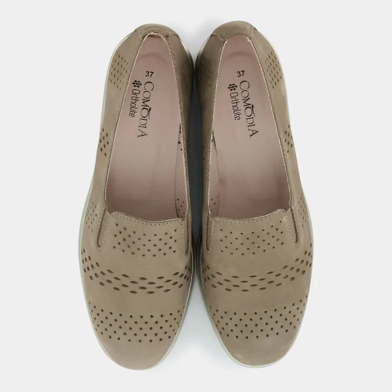 I mocassini Comodia sono una perfetta fusione di stile classico e comfort moderno, ideali per ogni occasione. La tomaia è realizzata in pelle sostenibile, un materiale ecologico che offre durabilità e un’estetica raffinata. La zeppa con tacco di 4 cm aggiunge un tocco di eleganza, mentre i dettagli forati e gli elastici consentono una calzata comoda e personalizzata. L’interno è ulteriormente migliorato con un sottopiede in OrthoLite®, offrendoti una piacevole sensazione di morbidezza ad ogni passo. Questi mocassini Eco Amico® si abbinano perfettamente a un abito leggero per un look sofisticato o con un paio di jeans skinny per un outfit casual-chic. Un must-have versatile e sostenibile per il guardaroba di ogni donna attenta allo stile e all’ambiente.