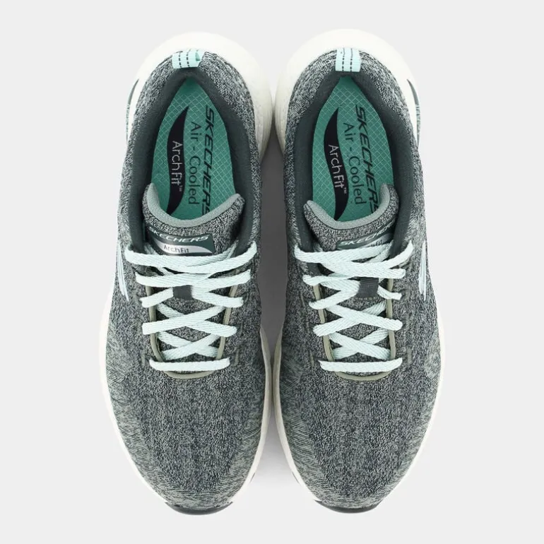 Scarpa comoda e leggera costruita con l’impiego di tecnologie; il sottopiede di tipo Arch Fit garantisce il massimo comfort in tutte le condizioni. La calzatura è di tipo sportivo ma è perfetta per essere impiegata nel tempo libero in abbinamento agli abiti casual preferiti; il colore è un grigio chiaro-scuro, melange, che lascia intravedere sulla tomaia il logo della Skechers, mentre pochi dettagli celesti posti sul retro e in prossimità dell’interno conferiscono alla scarpa un pizzico di eleganza. La chiusura è affidata a lacci dalla sezione piatta e la suola è abbastanza spessa per ottenere almeno un centimetro in più in altezza; il fondo è caratterizzato da intagli trasversali profondi che permettono al materiale di deformarsi liberamente e garantire la massima aderenza anche sui terreni bagnati e granulosi.
