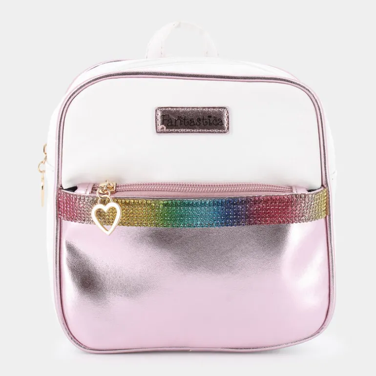 Porta con te un tocco di fantasia e sostenibilità ogni giorno con lo zainetto di Fantastica, perfetto per una bambina che ama distinguersi. Realizzato con attenzione all’ambiente, questo zaino Eco Amico® in esclusiva vanta una fodera in PET riciclato, dimostrando che stile e responsabilità verso il pianeta possono andare a braccetto. Multicolore, decorato con strass scintillanti e caratterizzato da un logo frontale ben visibile, offre praticità e brillantezza in ogni dettaglio, dalle chiusure lampo alla tasca esterna, idealmente pensata per tenere a portata di mano gli oggetti più piccoli. Dimensioni di 19x19x7 cm lo rendono comodo da portare a spasso per tutta la giornata. Scegli l’unicità e l’ecologia senza rinunciare alla magia!