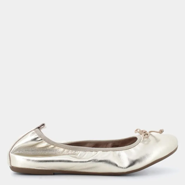 Eleganza e comfort si incontrano con le ballerine in oro di Patti Di Luna. Perfette per ogni occasione casual, queste scarpe uniscono stile e sostenibilità grazie alla loro composizione Eco Amico®. Realizzate in pelle laminata che illumina ogni passo, esaltano la femminilità con un delicato fiocco decorativo. Il sottile tacco di 1 cm assicura il giusto comfort, mentre il sottopiede in OrthoLite® garantisce morbidezza e traspirabilità. Inoltre, la pelle utilizzata per la tomaia e il sottopiede è sostenibile, confermando l’impegno verso l’ambiente. Abbinale a un abito estivo o a un paio di jeans per un look chic e disinvolto. Con le ballerine di Patti Di Luna, camminerai con lo stile e la leggerezza che hai sempre desiderato.