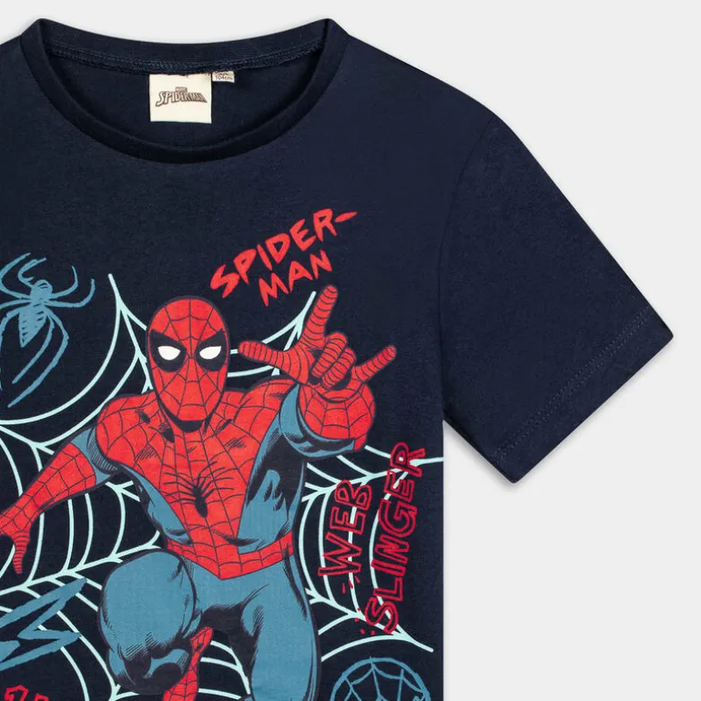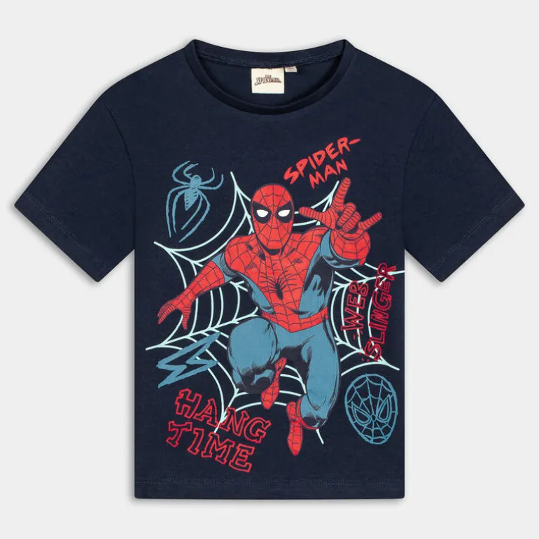La t-shirt Spiderman in blu è un must-have per i piccoli fan del supereroe più amato. Realizzata in 100% cotone, assicura una sensazione di morbidezza sulla pelle e il massimo comfort per le giornate più movimentate. La vestibilità regular offre libertà di movimento, mentre lo scollo tondo e le maniche corte donano un look casual perfetto per ogni occasione. Ideale per l’uso quotidiano, questa t-shirt può essere abbinata facilmente con jeans o pantaloni casual per creare outfit pratici ma sempre stilosi. Perfetta per accompagnare i più piccoli nelle avventure di ogni giorno, questa maglietta unisce praticità e stile in un unico capo. Un’aggiunta colorata e divertente al guardaroba di ogni bambino.