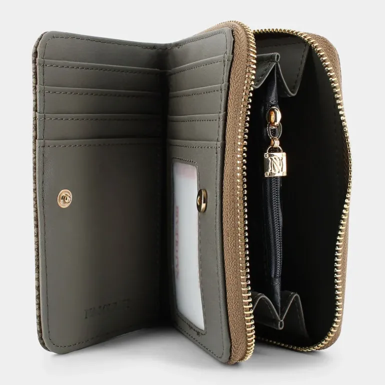 Eleganza e funzionalità si fondono nel portafoglio firmato Naj Oleari, pensato per la donna moderna. Con un look sofisticato in un affascinante marrone, questo accessorio si distingue per il suo design "zip around" che garantisce sicurezza e praticità. Il portafoglio presenta una patta ed è dotato di un portamonete e diversi scomparti per tessere, perfetto per tenere tutto in ordine. La stampa borbonese ed il logo frontale aggiungono personalità, rendendolo un vero simbolo di stile. Con dimensioni di 15 cm di lunghezza, 10.5 cm di altezza e 3 cm di ampiezza, è ideale da tenere in mano o in borsa, senza mai rinunciare al glamour. Un accessorio imprescindibile per ogni occasione casual.