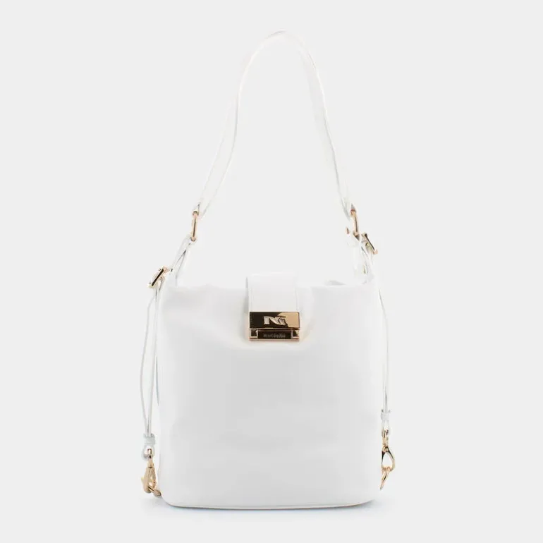 Raffinatezza e versatilità si incontrano in questa esclusiva borsa zaino di NERO GIARDINI, pensata per la donna moderna che non vuole sacrificare lo stile per la praticità. Progettata e realizzata in Italia, quest’opera di artigianato eleva il concetto di borsa a un nuovo livello. Con le sue dimensioni generose di 25x24x13 cm, offre ampio spazio per custodire con eleganza tutti i tuoi indispensabili quotidiani. La pelle bianca di alta qualità si fonde con dettagli oro e una chiusura in metallo, proiettandoti in una dimensione di lusso e sicurezza grazie alla lampo in testa. Con un manico di 38 cm, questa borsa zaino si adatta perfettamente alle tue giornate dinamiche, assicurandoti un comfort ineguagliabile senza rinunciare all’eleganza. NERO GIARDINI trasforma ogni uscita in un’occasione per brillare.