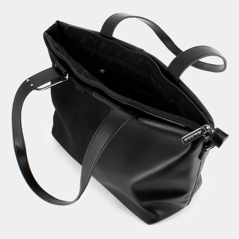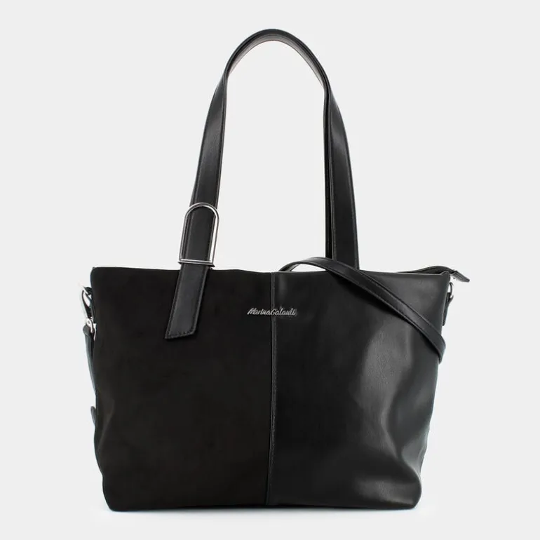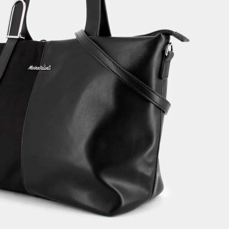 Eleganza e praticità si uniscono nella borsa Marina Galanti, perfetta per completare il tuo stile casual con un tocco di classe. Dal design bicolore e bimateriale, questo accessorio è realizzato per essere notato grazie alla sua chiusura lampo in testa e il logo metallico che aggiunge un tocco distintivo. Le dimensioni generose, 25 cm in altezza, 41 cm in lunghezza e 13 cm in ampiezza, la rendono ideale per le frenetiche giornate di shopping dove tutto deve essere a portata di mano e in ordine. Il manico di 26 cm offre un comodo trasporto a spalla. Un mix perfetto tra funzionalità e stile, questa borsa è pensata per la donna moderna che non rinuncia mai all’eleganza.
