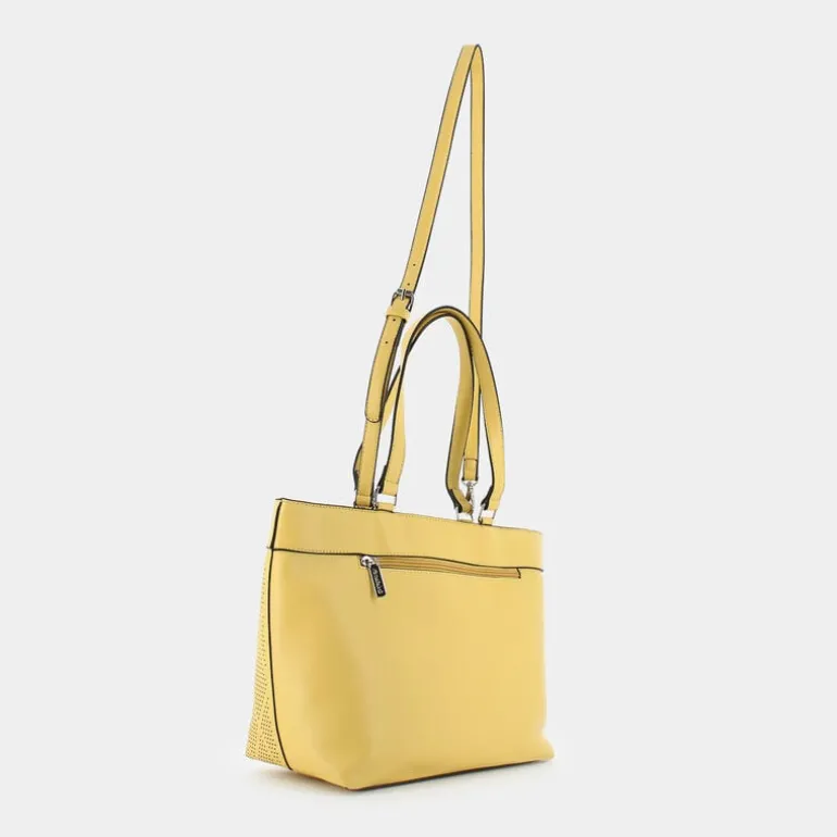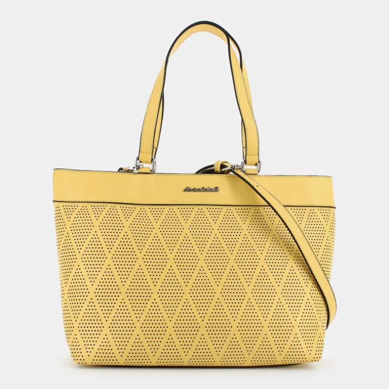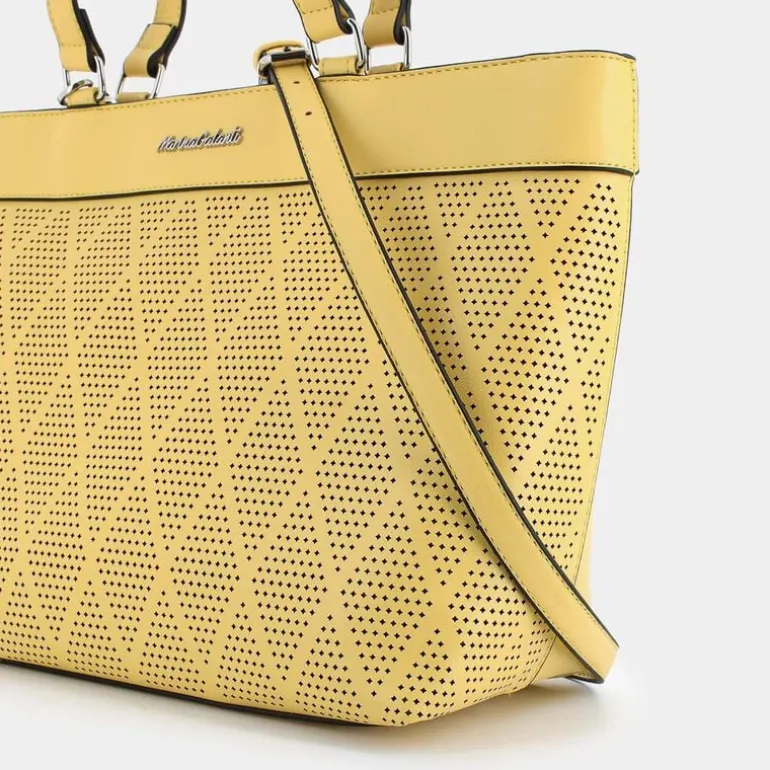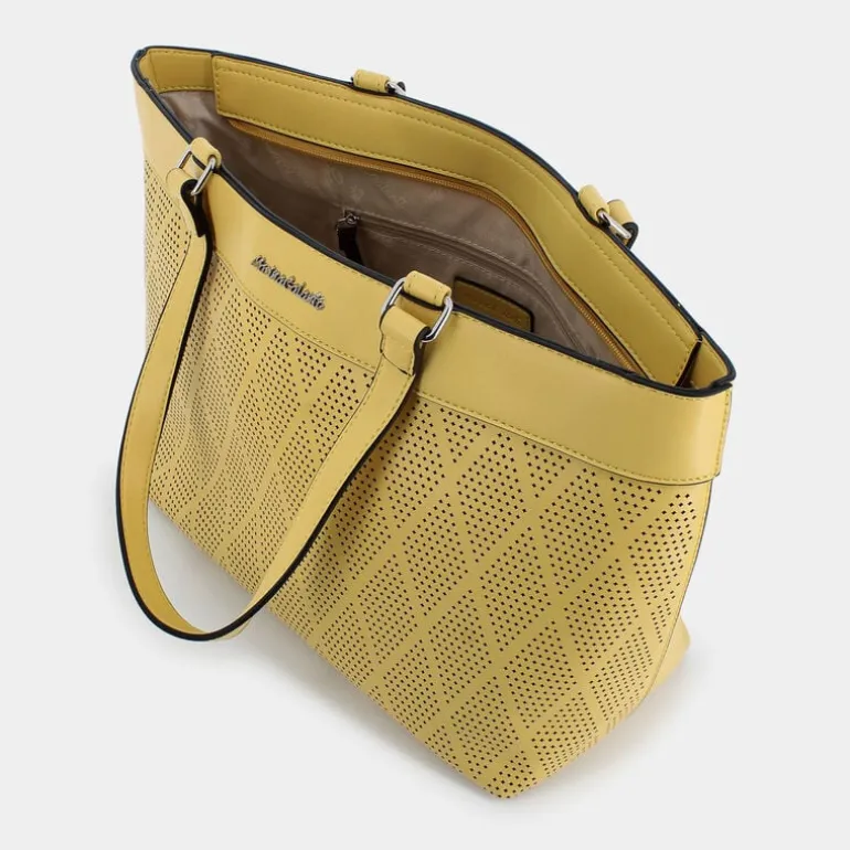 Con la borsa Marina Galanti, ogni giorno è un’occasione di stile e eleganza. Realizzata con una traforatura a motivi di rombi, questa shopping bag è perfetta per aggiungere un tocco sofisticato al tuo look casual. La borsa, spaziosa e pratica, misura 25 cm in altezza, 40 cm in lunghezza e 14 cm in ampiezza, offrendo tutto lo spazio di cui hai bisogno per i tuoi accessori quotidiani. Dotata di manico di 24 cm, è comoda da portare a spalla o a mano. Il logo frontale aggiunge un dettaglio distintivo e di classe. Ideale per completare un abbigliamento casual, dalla passeggiata in città all’aperitivo con le amiche. Scegli la raffinatezza di Marina Galanti per rendere unico ogni tuo outfit.