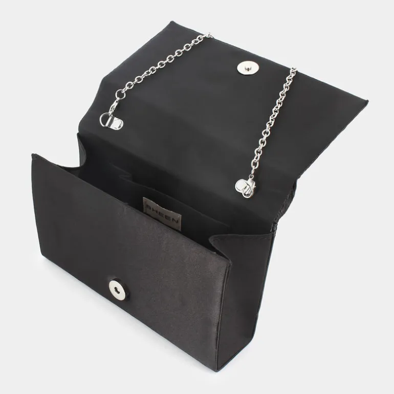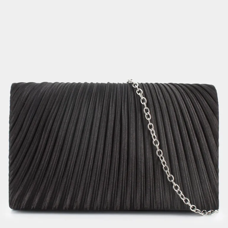 La clutch di SHeen è l’epitome dell’eleganza raffinata, perfetta per aggiungere un tocco di classe a qualsiasi evento formale. Questo accessorio esclusivo presenta un design in satin nero plissettato, esaltando la sua bellezza sofisticata e chic. Con dimensioni compatte di 20 cm di lunghezza, 12 cm di altezza e 5 cm di ampiezza, è pratico e maneggevole, ma abbastanza capiente per contenere i tuoi essenziali. Il manico lungo 55 cm aggiunge versatilità, permettendoti di portarla comodamente a mano o a tracolla. Ideale per cerimonie e feste eleganti, questa borsa a mano è un vero gioiello che non passerà inosservato. Una scelta perfetta per chi ama distinguersi con stile.