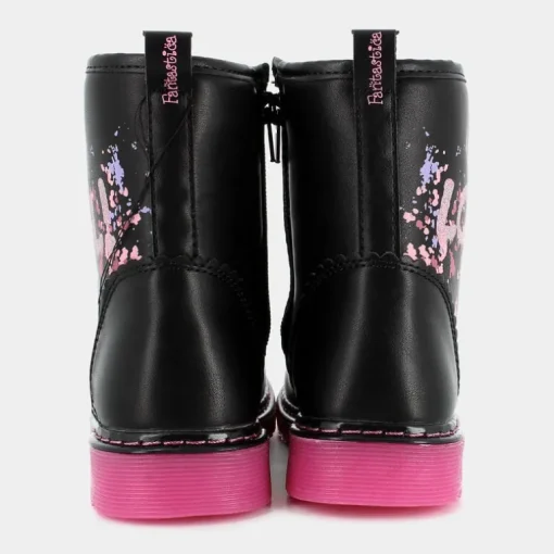 Eleganza e sostenibilità si incontrano con questi favolosi scarponcini neri della linea Eco Amico® di Fantastica. Realizzati con materiali riciclati (non PET o PU) per la fodera, il sottopiede e la tomaia, questi stivaletti garantiscono comfort e uno stile unico. Dotati di lacci e una cerniera interna laterale per una calzata pratica e veloce, aggiungono un tocco di glamour grazie ai dettagli glitter. Questi scarponcini sono perfetti per il guardaroba casual delle bambine, aggiungendo un punto di stile ai loro outfit quotidiani. Abbinamenti ideali? Jeans o pantaloni stretti, una maglietta grafica colorata e una giacca leggera. Un paio di scarponcini che combinano moda, praticità e rispetto per l’ambiente