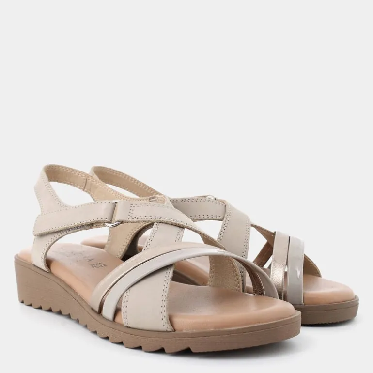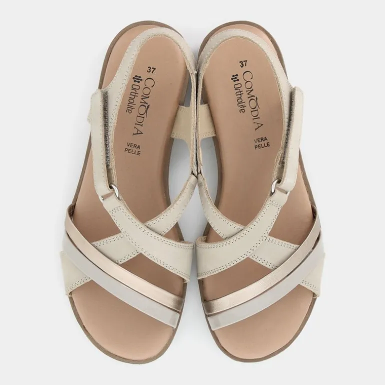 Eleganza e comfort si fondono nei sandali beige Comodia, un must per ogni donna attenta allo stile e alla sostenibilità. Questi sandali si distinguono per la loro zeppa di 3.5 cm, che offre un’altezza piacevole senza sacrificare la comodità. Realizzati con una combinazione di pelle e sintetico nell’esterno, vantano un sottopiede in pelle sostenibile e OrthoLite®, garantendo freschezza e benessere ad ogni passo. Le fasce elastiche e il design bimateriale aggiungono un tocco di modernità, mentre lo strap assicura una calzata perfetta. Indossali con un abito estivo leggero o un paio di pantaloni cropped per un look casual sofisticato. Con i sandali Comodia, il tuo outfit non passerà mai inosservato!