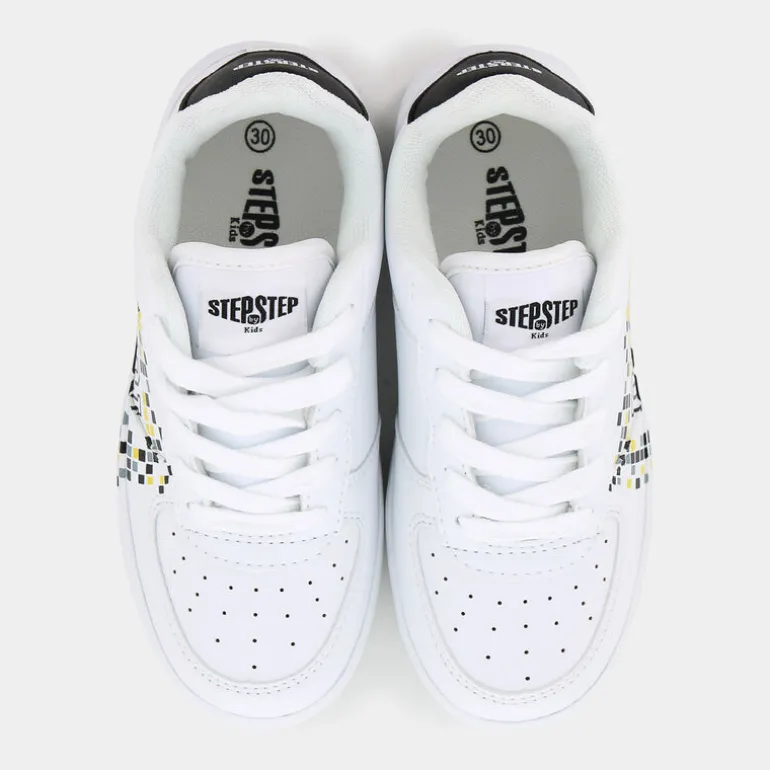 Rendi unico ogni passo con queste sneaker Step By Step progettate per i bambini. Realizzate per il tempo libero, queste scarpe sportive sono perfette per accompagnare i più piccoli nelle loro avventure quotidiane. La struttura Eco Amico® celebra la sostenibilità con una fodera e un sottopiede entrambi in PET riciclato, garantendo comfort e rispetto per l’ambiente. Con lacci per una chiusura sicura e una vivace grafica color block che include un simpatico smile DJ, ogni dettaglio di queste sneaker racconta un mondo di allegria e dinamismo. Abbinale facilmente con jeans, felpe colorate o tute sportive per un look casual e allegro. Perfette per dare un tocco di stile e sostenibilità alle giornate dei tuoi bambini.