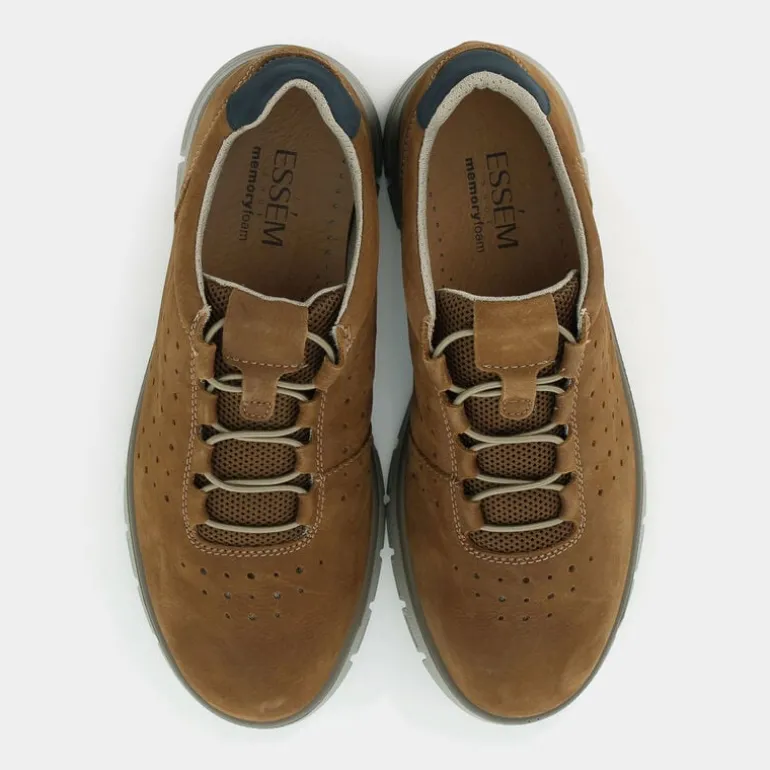 Le stringate Essem per uomo rappresentano il perfetto connubio tra eleganza e comfort. Realizzate in morbida pelle marrone, queste scarpe incarnano l’artigianalità made in Italy. All’interno, una combinazione di pelle e tessuto assicura una vestibilità confortevole, mentre la soletta in pelle ospita un sottopiede in Memory Foam che si adatta alla forma del piede. Perfette per un look casual, queste stringate sono arricchite con dettagli tecnologici come la fodera traspirante e il plantare anatomico che garantiscono freschezza e supporto tutto il giorno. Gli elastici e il contrafforte di sostegno offrono ulteriore stabilità. Indossale con jeans slim-fit e una camicia per un outfit casual sofisticato, dai toni caldi e accoglienti. Scelte ideali per l’uomo moderno che non rinuncia allo stile.