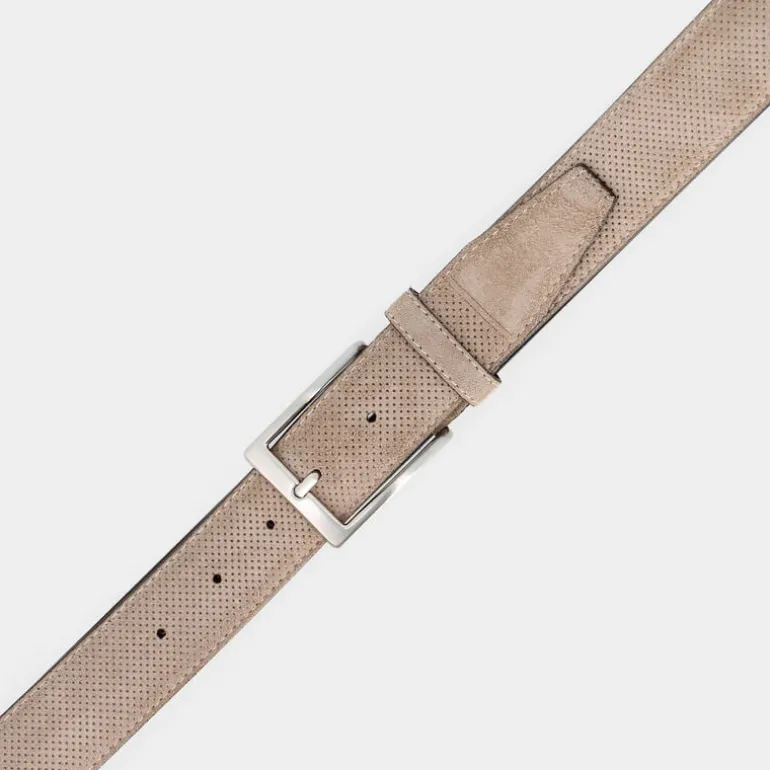 Eleva il tuo stile con la cintura in camoscio traforato Fratelli Pietrini, un accessorio che unisce l’anima artigianale italiana a un’estetica impeccabile. Realizzata in pregiata pelle marrone e finita con una elegante fibbia quadrata in acciaio satinato, questa cintura si presenta come il dettaglio che fa la differenza in ogni ensemble classico. La larghezza di 3.5 cm la rende versatile per ogni tipo di pantalone, dalla sartoria più raffinata ai jeans di qualità. Dotata di 5 fori per una regolazione personalizzata e la possibilità di essere accorciata, assicura una vestibilità perfetta. Con un’unica cucitura che ne esalta la semplicità e l’eleganza, la cintura Fratelli Pietrini rafforza la tua immagine con una nota di raffinato distacco e qualità senza tempo.