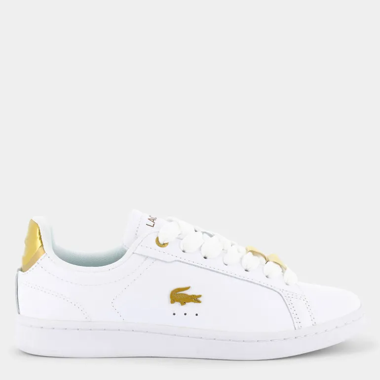 Dal fascino iconico e senza tempo, le scarpe sportive da donna Lacoste sono estremamente comode e versatili. Nella soletta è infatti presente l’innovativa tecnologia Ortholite, capace di mantenere il piede sempre fresco e asciutto: una speciale membrana aumenta la traspirazione e garantisce la massima impermeabilità. L’estetica classica delle scarpe abbraccia i dettami della moda in questo modello con tomaia in pelle di colore bianco, dove dettagli eleganti e raffinati contribuiscono a dare all’insieme un aspetto molto glamour. Il brand del logo, il mitico coccodrillo, è presente sia nella parte laterale che nei lacci mentre, sul retro, il patch posteriore ultra brillante non passa inosservato. Queste scarpe sono la soluzione giusta per completare look sportivi destinati al tempo libero e possono essere indossate anche con jeans e felpa per una passeggiata in centro.