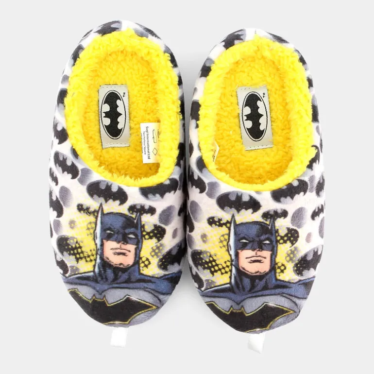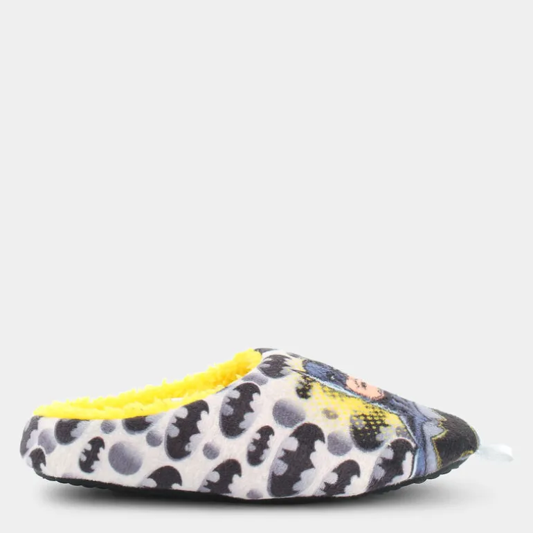 Le ciabattine Batman sono progettate per gli appassionati di fumetti e di supereroi, ma anche per tutti quei bambini che amano sentirsi comodi. Sono realizzati in tessuto e materiali sintetici, con fodera ultra soffice in cui il piedino si sentirà sempre asciutto e avvolto nella maniera più ottimale. La suola, realizzata in materiali compatti di ultima generazione, presenta piedini antiscivolo che rendono queste pantofole super grippanti, adatte ai bambini che giocano e corrono su tutti i tipi di pavimenti. L’interno è di un bel giallo acceso, in contrasto cromatico con i colori scuri dell’esterno: a completare il design accattivanti di queste ciabattine, il logo del pipistrello più famoso e del mondo e la figura vintage sul collo del piede.