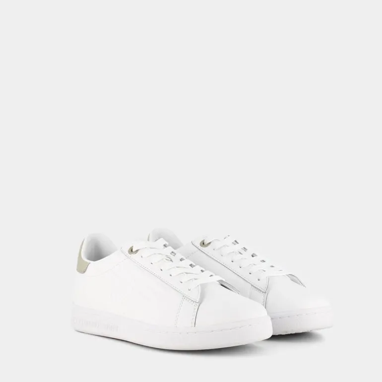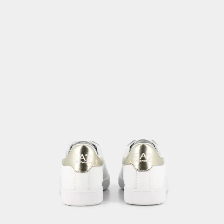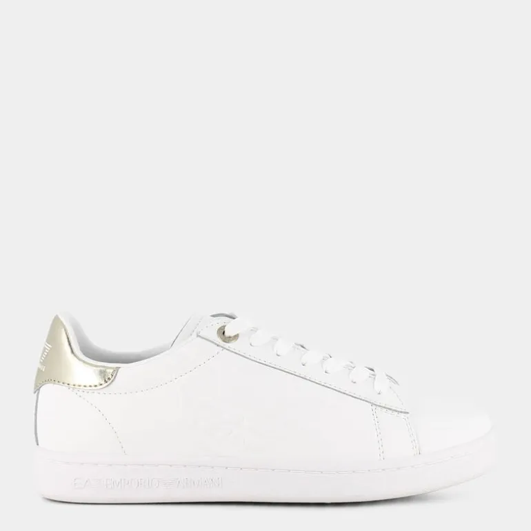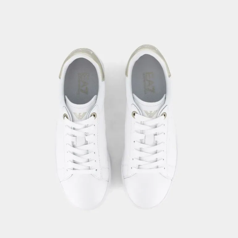 Esprimi il tuo stile con un tocco di classe grazie a queste sneakers EA7 in bianco puro. Realizzate con cura, l’esterno in pelle offre un aspetto sofisticato e durevole, mentre l’interno combina pelle e tessuto per un comfort assoluto. La zeppa di 3 cm aggiunge altezza senza compromettere la comodità, perfetta per il tuo look casual. Il fondo a cassetta e il talloncino laminato conferiscono un dettaglio moderno e raffinato. Perfette da abbinare a jeans skinny e una maglietta basic per un look casual chic, oppure con un abito estivo per un tocco sportivo ma elegante. Queste sneakers EA7 sono destinate a diventare il tuo nuovo must-have per un look sempre alla moda e confortevole.