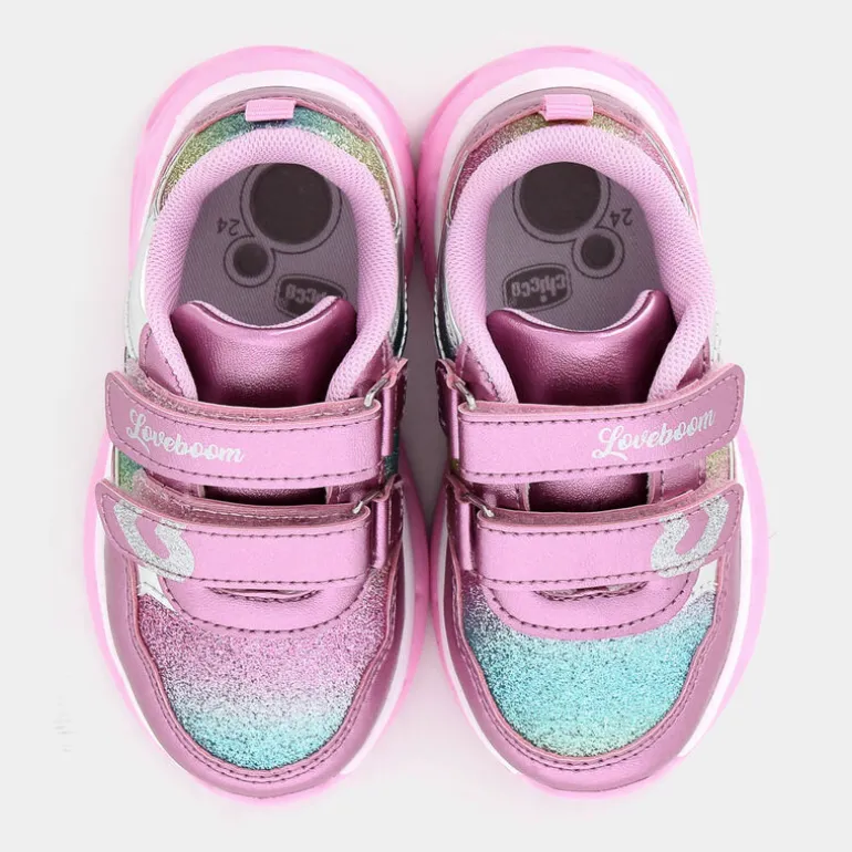 Sei pronta a far risplendere ogni passo della tua bambina con queste incantevoli scarpe primi passi di Chicco! Caratterizzate da un affascinante colore rosa, queste scarpe sono progettate per la prima esplorazione del mondo. Con un pratico doppio velcro, la calzata è facile e sicura, perfetta per i piccoli piedini in crescita. La suola arricchita da luci aggiunge un tocco di magia ad ogni movimento, incantando sia grandi che piccini. La qualità dei materiali garantisce comfort e durevolezza per tutte le avventure giornaliere. Abbinale a dei leggings colorati e ad una t-shirt per un look casual semplice e giocoso. Un’esperienza di gioco e stile che accende la fantasia!