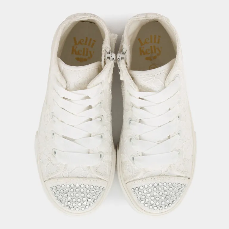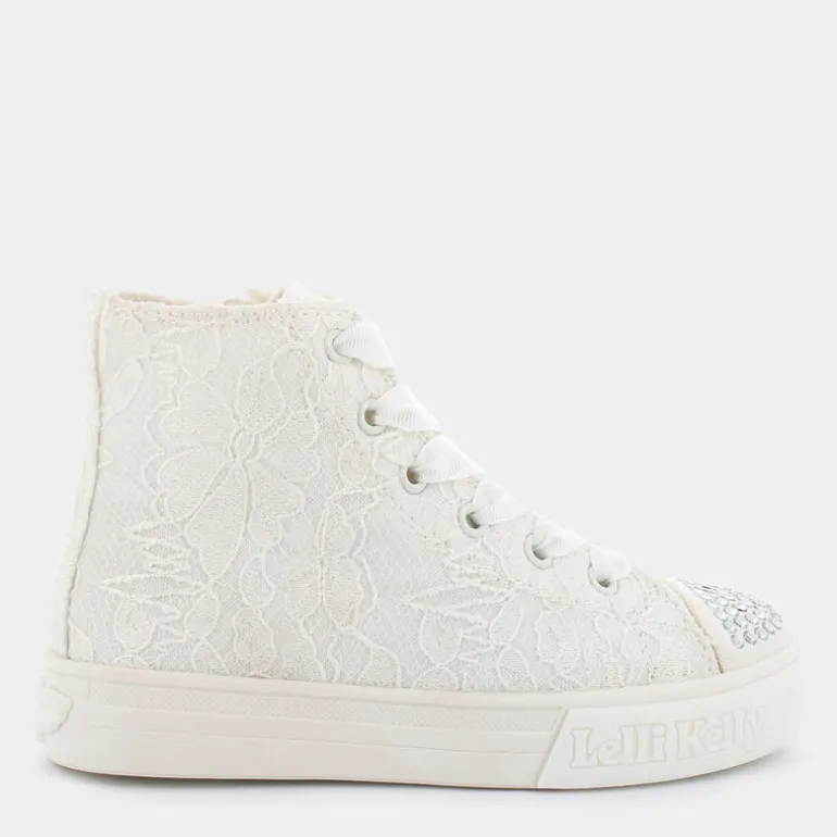 Le sneakers LELLI KELLY sono un sogno diventato realtà per ogni bambina che ama abbellire i suoi giorni con un tocco di magia! Queste incantevoli scarpe bianche sono decorate con delicati ricami, pizzo e cuori, progettate per aggiungere un soffio di eleganza e fantasia al passo di chi le indossa. La finitura vulcanizzata e i lacci assicurano resistenza e una calzata sicura, perfetti per le numerose avventure del tempo libero.Ideali per essere abbinati con abiti leggeri o con una gonna e una maglietta, queste sneakers sono l’accessorio perfetto per una festa all’aperto o una giornata speciale. Con LELLI KELLY, tua figlia non solo camminerà comoda, ma sentirà di portare con sé un piccolo pezzo di un mondo fatato!