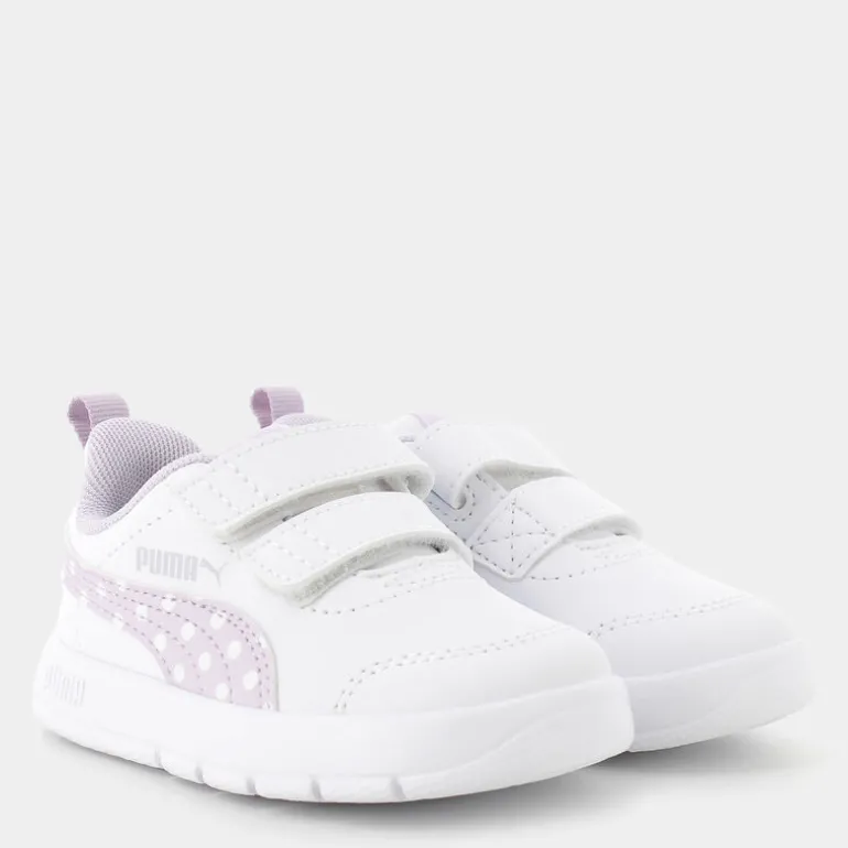 Passi sicuri e comodi per i più piccoli con queste sneakers sportive! Perfette per ogni avventura quotidiana, le sneakers PUMA sono l’ideale per i primi passi delle bambine. Realizzate con un design accattivante e funzionale, presentano un doppio velcro che assicura una calzata rapida e facile, così da mantenere i piedini ben saldi e a loro agio. Il colore bianco dona uno stile fresco e versatile, adattabile a qualsiasi outfit. Immaginatele con jeans e una maglietta colorata per un look casual perfetto per il tempo libero. Queste scarpe sono pensate per accompagnare i primi passi delle bimbe, combinando sicurezza, stile e comfort eccezionale.