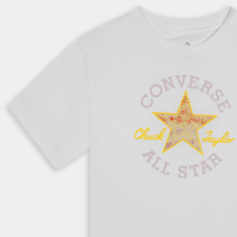 Ecco a voi una t-shirt firmata Converse, pensata per le appassionate del look sportivo e di qualità. Questo capo è realizzato in puro cotone, assicurando un comfort insuperabile e una traspirabilità ideale per le attività quotidiane o le sessioni sportive. Il tessuto leggero e morbido offre una sensazione di freschezza, mentre la vestibilità regular si adatta perfettamente al corpo, permettendo libertà di movimento. Il design con scollo tondo e maniche corte la rende versatile e facile da indossare in ogni occasione. Grazie al colore bianco, si abbina perfettamente a un paio di leggings colorati o a pantaloncini sportivi, per un look active e di tendenza. Una scelta ideale per chi ama uno stile essenziale senza rinunciare alla moda.