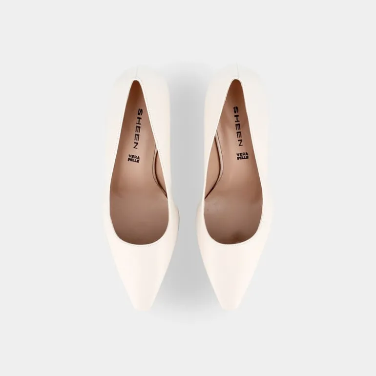Eleganza e raffinatezza si incontrano nelle decolleté Sheen, un must-have per ogni guardaroba femminile. Realizzate in Italia, queste scarpe si distinguono per il loro splendido colore bianco e l’esclusivo design, perfetto per occasioni eleganti. Il tacco di 8.5 cm slancia la figura con grazia, mentre la soletta in pelle promette comfort duraturo, rendendo queste decolleté ideali per eventi importanti o serate speciali.Completa il tuo outfit da sera abbinandole a un abito midi in seta o a una jumpsuit elegante: sarai l’epitome della sofisticatezza. Queste decolleté Sheen, simbolo di eleganza senza tempo, sono scelte impeccabili per chi cerca di distinguersi con stile e confort.
