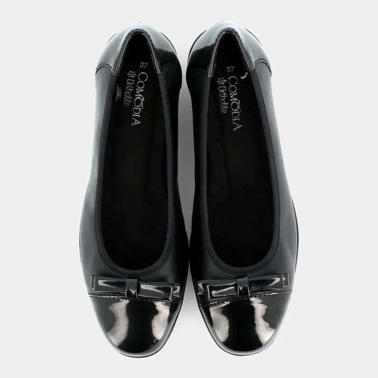 Le decolleté firmate dal marchio Comodia si distinguono per lo stile classico e raffinato. Per il sottopiede, il brand sceglie di impiegare un componente speciale, l’Ortholite, materiale dal potere traspirante che è in grado di ammortizzare il movimento, supportando il mantenimento di una postura corretta. Il design di queste scarpe comprende: tomaia di colore nero, suola dalla linea svasata, punta arrotondata ed inserto posteriore, entrambi con finitura lucida. Una graziosa applicazione tono su tono a forma di fiocco decora la punta. La suola consiste in una comoda alzata di 4 cm, che consente di distribuire uniformemente il peso corporeo sulla scarpa e di mantenere il giusto equilibrio durante la camminata. Le decolleté Comodia sono perfette anche per le grandi occasioni.
