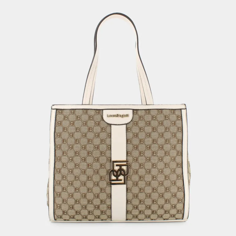 Scopri il fascino senza tempo di questa borsa di Laura Biagiotti, dove l’eleganza incontra la funzionalità in un simbolo di stile indiscutibile. Avvolta in una sofisticata tonalità beige, questa borsa si distingue per la sua lavorazione bicolore e il design bimateriale, arricchiti da un maxilogo oro che irradia lusso e distinzione. Le dimensioni generose (lunghezza 32 cm, altezza 28 cm, profondità 10 cm) ti permettono di trasportare con comodità tutto quello che desideri, rendendola l’accessorio perfetto per il tuo ogni giorno. Le dettagliate finiture, incluso il logo metallico e la chiusura con lampo in testa, parlano la lingua della qualità e del fascino. Con un manico di 24 cm, questa borsa Laura Biagiotti promette comodità e stile per ogni occasione casual.
