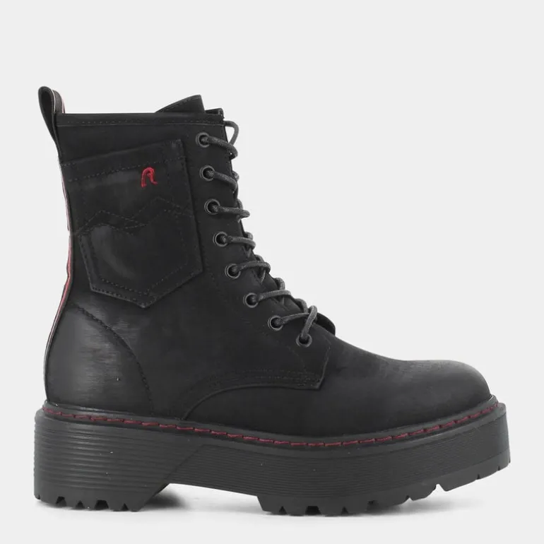 Scarponcino con lacci stile biker, protagonista è la suola imponente combinata al sottopiede Ortholite®, lo stile che include glamour e confort per tutte le occasioni, sia di giorno che di notte.