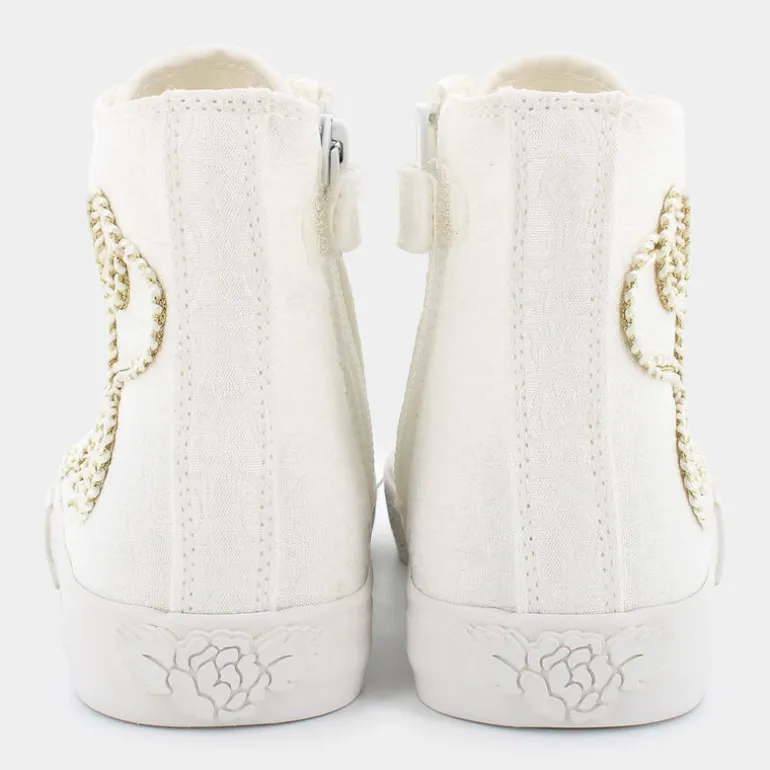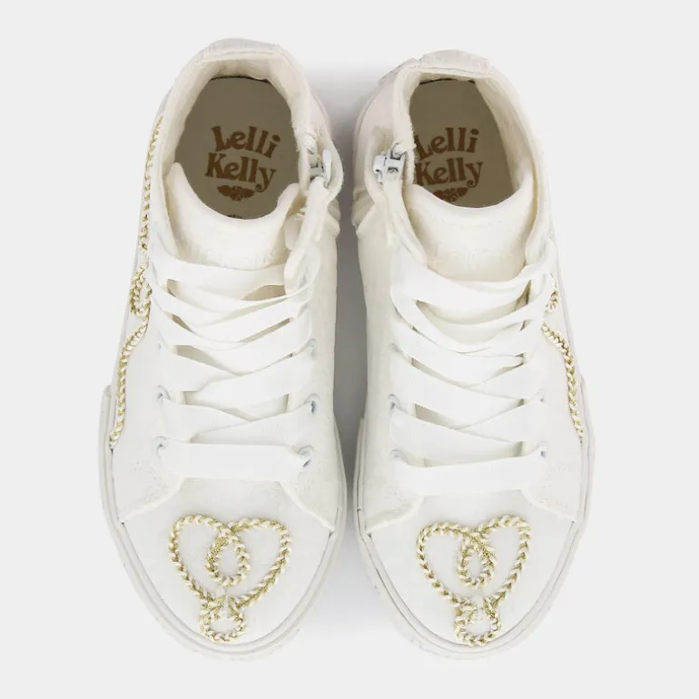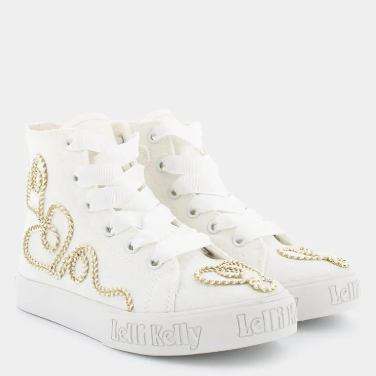 Le Lelli Kelly presentano delle sneakers irresistibili, disegnate per le piccole principesse che amano combinare eleganza e gioco. Queste scarpe da tempo libero, grintose nel colore bianco, si distinguono per i dettagli ricamati con motivi di cuori in filo d’oro, trasformando ogni passo in un’affermazione di stile e dolcezza. La tecnica vulcanizzata assicura durabilità e resistenza, ideali per sopportare l’energia di giochi senza fine, mentre i lacci consentono una calzata personalizzabile e sicura. La fusione di estetica affascinante con la qualità costruttiva rende queste sneakers Lelli Kelly perfette per accompagnare ogni outfit, da quelli più casual a quelli pensati per occasioni speciali, sempre mantenendo alto il comfort. Scegliere queste scarpe significa regalare alle bambine la magia di sentirsi speciali in ogni momento della giornata.