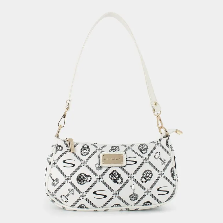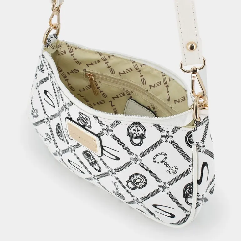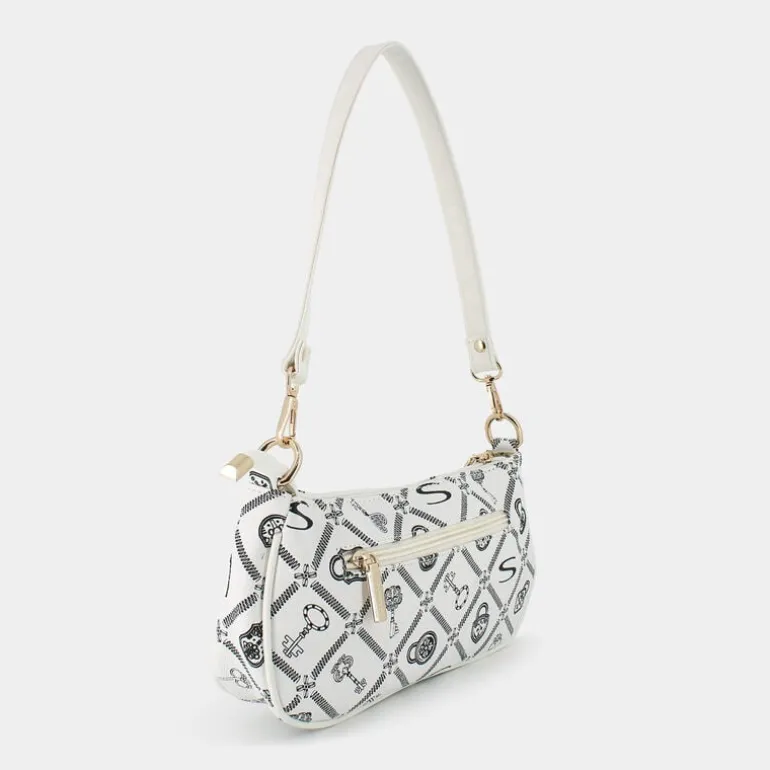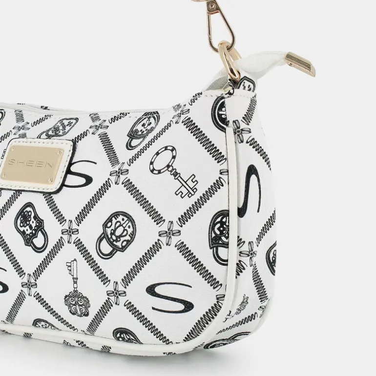 Una meraviglia di design che sprigiona stile in ogni dettaglio, la tracolla SHEEN in bianco conquista con il suo fascino intramontabile. La stampa allover bicolore e le fantasie accattivanti rendono questo accessorio un vero e proprio pezzo d’arte da indossare. Caratterizzata da un manico di 145 cm, una lunghezza di 25 cm, un’altezza di 16 cm e un’ampiezza di 6 cm, offre praticità senza compromessi. L’elegante baguette è impreziosita dal logo metallico e dalla placca sulla lampo in testa. Perfetta per un look casual che richiede un tocco di eleganza, è l’ideale per accompagnarti nella tua quotidianità con stile e funzionalità. Un accessorio che racconta classe e originalità in un solo colpo.
