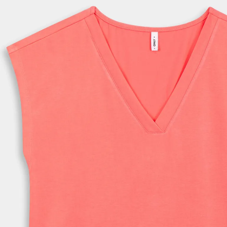 Lasciati ispirare dalla t-shirt a maniche corte di Only, simbolo di stile casual dal fascino irresistibile. La sua tonalità rossa accende il look, mentre il tessuto in TENCEL™ Modal e poliestere garantisce morbidezza e comfort per tutto il giorno. Questa t-shirt, con la sua vestibilità regular e scollo a V, è un capo essenziale nel guardaroba di ogni donna alla ricerca di versatilità e stile. Abbinata a un paio di jeans o una gonna, è perfetta per un look casual ma curato, adatto sia per una passeggiata in città, sia per un pomeriggio tra amiche. Una vera perla per chi ama distinguersi con eleganza e semplicità.