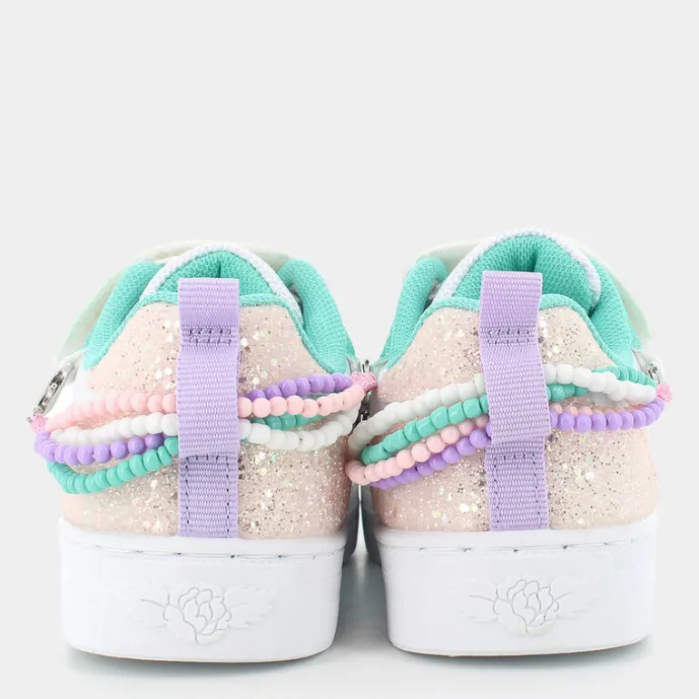 Esprimi il tuo stile vivace e accattivante con le sneaker per bambina Lelli Kelly, perfette per aggiungere un tocco di colore a ogni passo. Acquistando questo articolo in omaggio avrai un gadget speciale: il braccialetto rosa perfetto per ogni tipo di outfit. Queste scarpe sportive e versatili presentano una combinazione di colori multicolor, impreziosita da scintillanti dettagli glitterati che le rendono irresistibili per le piccole fashioniste. Il pratico laccio elastico e la chiusura in velcro garantiscono una calzata sicura e comoda, ideale per le avventure quotidiane e il tempo libero. La struttura leggera e confortevole le rende perfette per correre e giocare tutto il giorno. Abbinale a un outfit casual con jeans e una t-shirt colorata per un look energico e allegro. Perfette anche con un vestitino estivo per un tocco di originalità.
