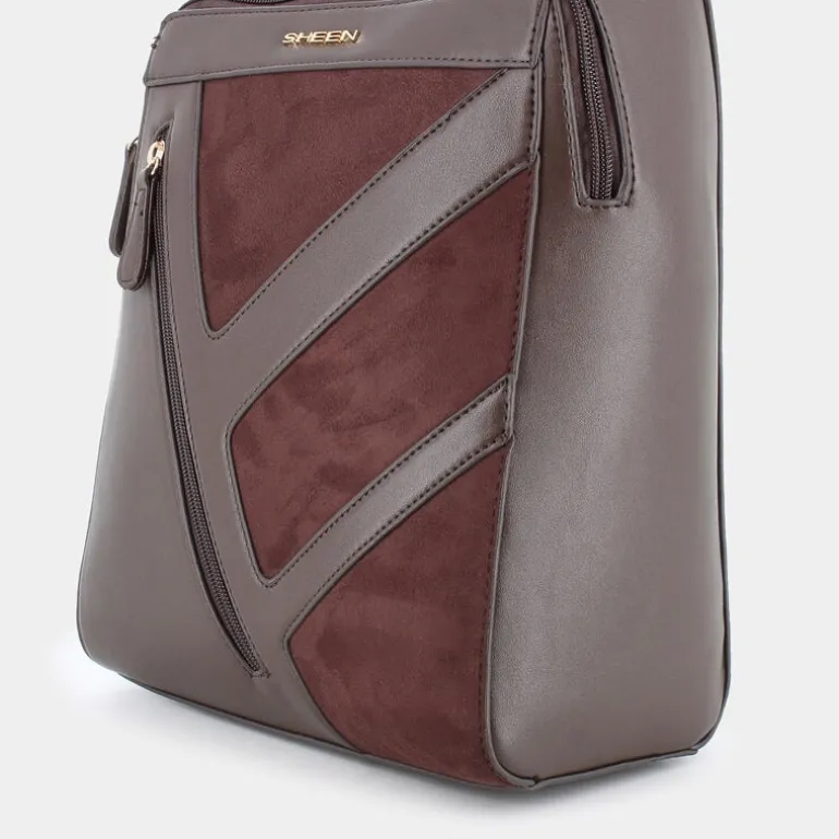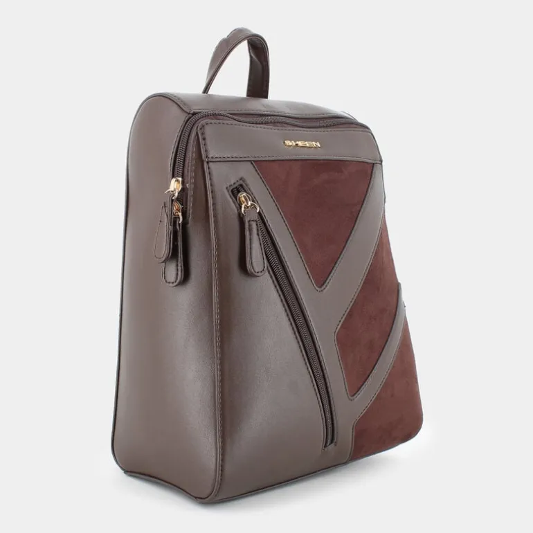 Scopri l’eleganza di uno zaino che unisce stile e sostenibilità. Questo zaino del marchio Sheen è un accessorio Eco Amico® esclusivo, perfetto per il look casual della donna moderna. Realizzato in un raffinato bimateriale di ecocamoscio ed ecopelle in un sofisticato tono su tono marrone, ha un design contemporaneo e accattivante. Misura 30.5 cm in altezza, 24 cm in lunghezza, e 13 cm in ampiezza, offrendo spazio sufficiente per tutti gli oggetti essenziali. Dotato di manico, tracolle e dettagli come lampo frontale e lampo in testa, inoltre presenta un elegante logo metallico. L’interno è foderato in PET 100% riciclato, dimostrando la dedizione del brand alla sostenibilità. Un accessorio indispensabile per ogni occasione casual.