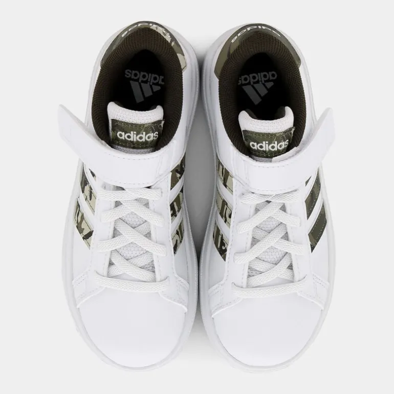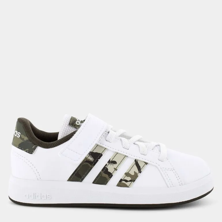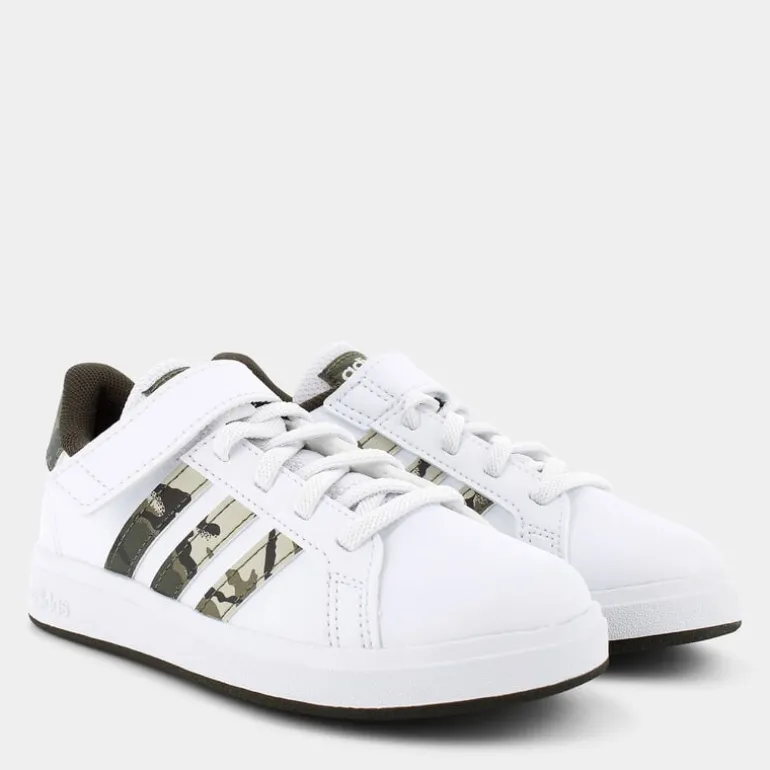 Rivivi il fascino senza tempo dello stile tennis retrò con le Sneaker Adidas da bambino, ideali per il tempo libero. Queste scarpe si distinguono per il loro look pulito ed elegante, in bianco brillante, arricchite da dettagli camouflage che aggiungono un tocco di modernità e carattere. La chiusura con velcro e laccio elastico non solo omaggia i design classici, ma assicura anche una calzata pratica e veloce, perfetta per i piccoli che sono sempre pronti per la prossima avventura.Abbinale con shorts e una polo per un look estivo fresco e sportivo, o con jeans e maglione durante i mesi più freddi. Queste sneakers sono l’aggiunta ideale al guardaroba di ogni giovane esploratore, combinando storia e stile in ogni passo.