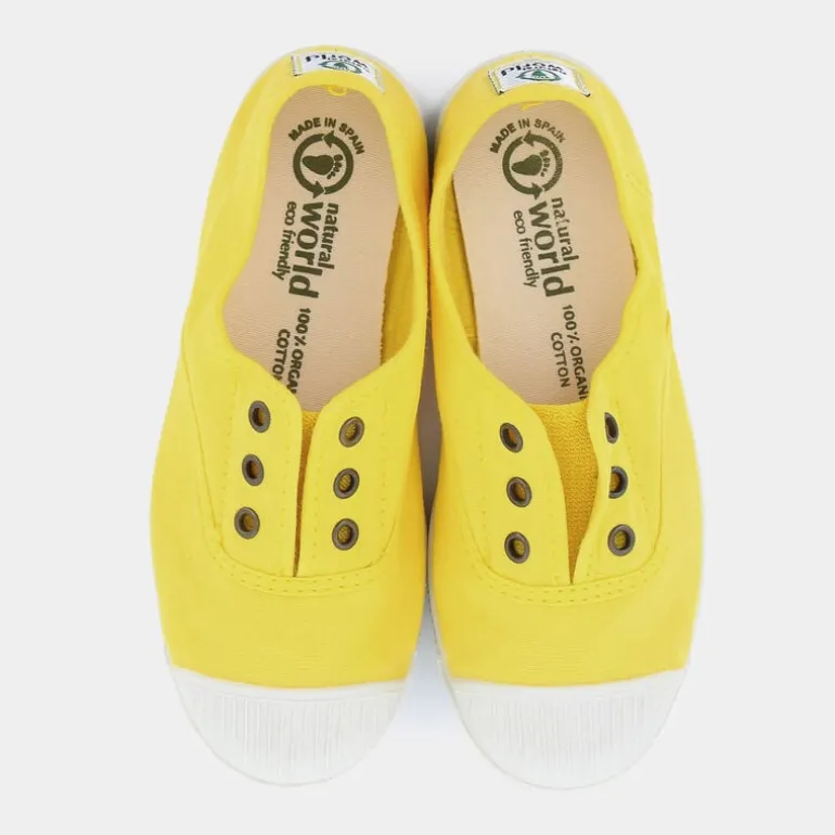 Porta i tuoi piccoli verso un futuro più verde con queste slip-on di Natural World, il perfetto incontro tra comfort quotidiano e materiali sostenibili! Realizzate per avventure piene di gioco e scoperta, queste sneakers gialle brillanti catturano l’attenzione con un design fresco e vivace. La loro comoda struttura è interamente realizzata con materiali sostenibili: fodera, sottopiede e tomaia in Organic Cotton vegano, abbinati a una suola in gomma naturale, anch’essa vegana. Il richiamo alla moda dimostra un impegno non solo verso lo stile, ma anche verso il pianeta. Perfette per accompagnare i bambini nelle loro giornate di scuola o gioco, queste sneakers sono un vero testimonial di come si possa essere trendy e consapevoli allo stesso tempo.