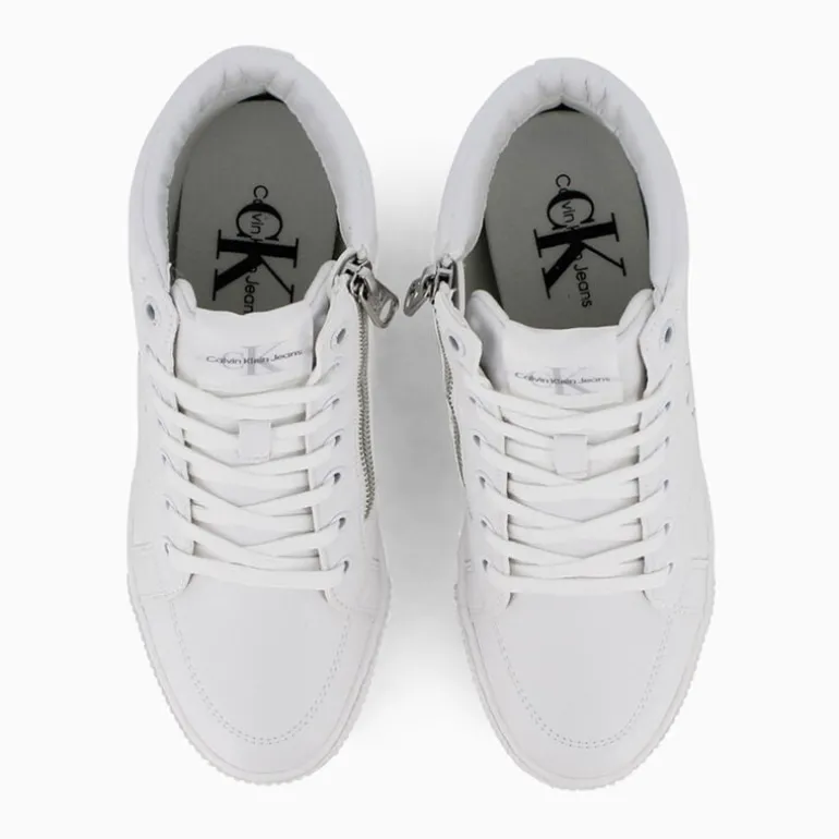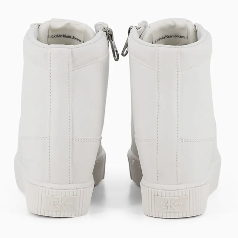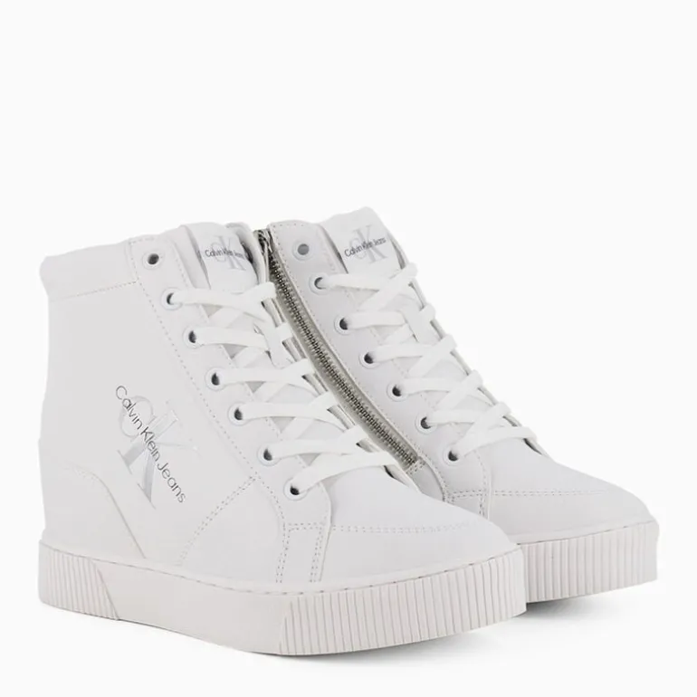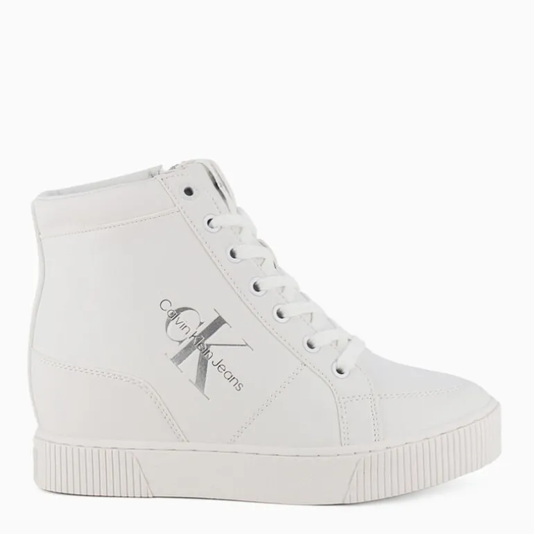 Sneaker con zeppa interna a marchio Calvin Klein Jeans con logo sulla tomaia, la cui fodera interna è realizzata in poliestere riciclato 100%.