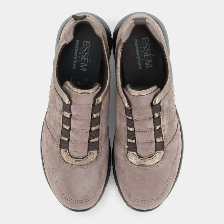 I mocassini alla moda firmati da Essem sono caratterizzati da uno stile classico ed elegante, ma si possono abbinare facilmente in tanti modi diversi. Queste scarpe sono caratterizzate da due componenti tecnologicamente avanzate: il sottopiede in Memory Foam, che risulta comodo e confortevole anche in caso di utilizzo prolungato, e la suola con capsula anti-shock, in grado di ammortizzare movimenti ed eventuali urti, consentendo di camminare in totale sicurezza. I mocassini sono composti da design slip-on, coulisse frontale, tomaia marrone con effetto scamosciato, finiture in pelle lucida con effetto metallizzato color oro, linguetta imbottita, impunture tono su tono, strass decorativi laterali, linguette pull-on posteriori e imbottitura alla caviglia. La suola, in gomma a contrasto, comprende una zeppa di 3,5 cm.