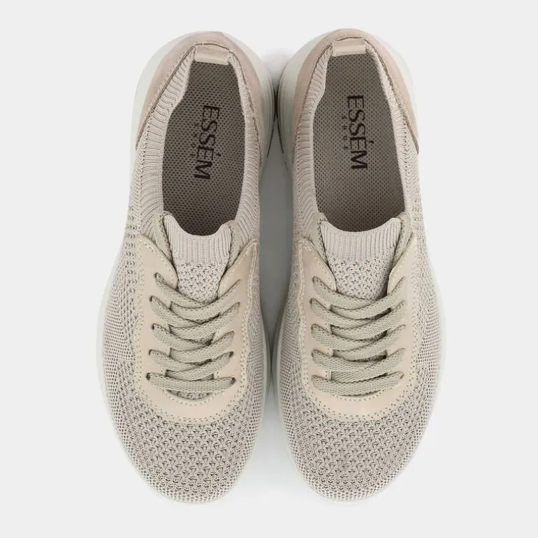 Lascia il segno con le sneakers ESSEM, un mix perfetto tra moda e tecnologia. Queste sneakers beige “Eco Amico®” sono realizzate in Italia, con una tomaia in pelle, PET riciclato e camoscio elasticizzato. L’effetto bicolore dona un tocco chic, mentre la zeppa di 3.5 cm con capsula antishock offre comfort a ogni passo. La pianta larga e i materiali elasticizzati assicurano una calzata comoda. Il sottopiede in memory foam rende queste scarpe ideali per un uso casual quotidiano. Abbina queste sneakers a jeans boyfried strappati e una maglietta bianca per un look fresco e alla moda. Completa il tuo stile con una giacca di jeans oversize e una tote bag per un outfit perfettamente bilanciato tra comfort e tendenza.
