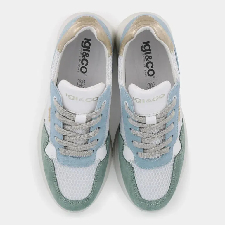 Le sneakers IGI & CO. in azzurro rappresentano un equilibrio perfetto tra eleganza e comodità, ideali per chi ama un look casual-chic. Realizzate con materiali di alta qualità come la pelle e il tessuto, queste scarpe sono il risultato di un design made in Italy che assicura stile e durata nel tempo. La pelle usata per la soletta promette comfort, mentre la piattaforma di 5.5 cm con zeppa offre altezza senza rinunciare alla stabilità. Il tema multicolor aggiunge un tocco vivace che si abbina a diversi look. Perfette con un paio di jeans skinny e una camicia fluida per un outfit disinvolto, ma sempre alla moda, queste sneakers diventano un must-have per ogni donna moderna. Lasciati conquistare dalla loro versatilità.