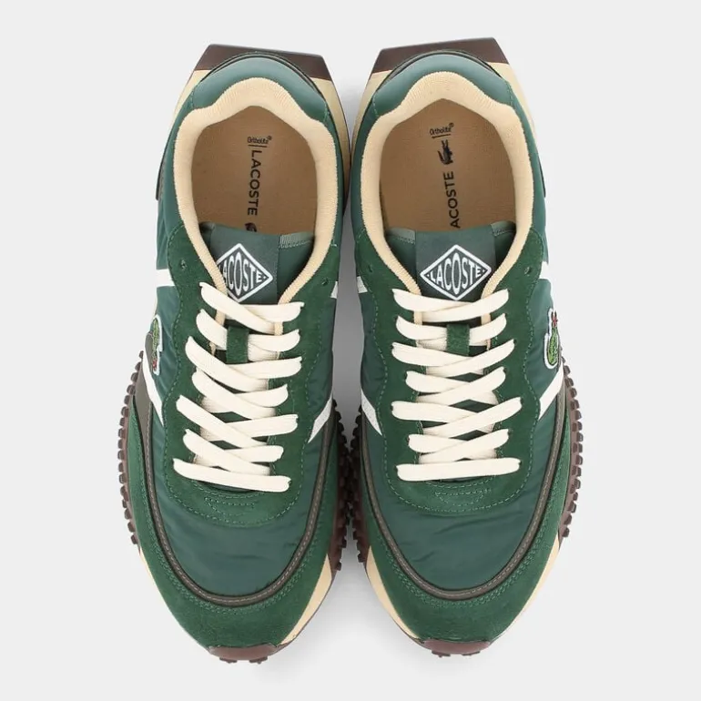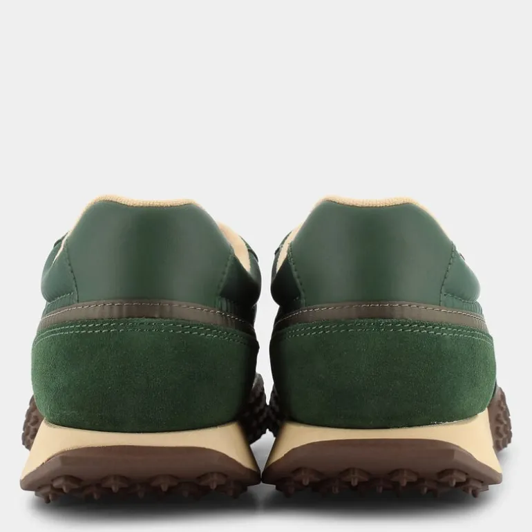 La Lacoste propone queste sneakers fabbricate interamente mediante tecnologie di ultima generazione; si tratta di un prodotto molto performante dotato di un ergonomico sottopiede in Ortholite. La linea è particolarmente innovativa, un dettaglio che rende l’estetica della scarpa ideale perché possa essere impiegata nel tempo libero come durante l’attività sportiva. Il colore è un verde carico che sfuma a seconda del tessuto; le parti rinforzate come la punta e il tallone presentano una tonalità più chiara. La suola è molto interessante ed ha un disegno che sembra perfetto per ottenere un ottimo grip anche in presenza di terreno impervio o sdrucciolevole; dietro al tallone si prolunga un poco con una sorta di piccolo spoiler che sembra creato appositamente per salvaguardare l’integrità della calzatura negli usi più intensivi.