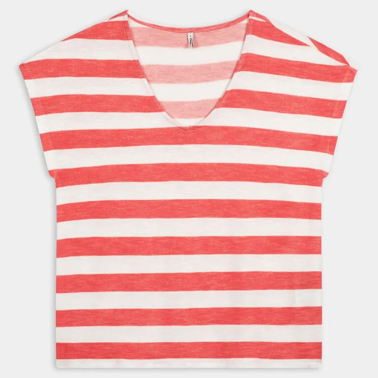 Ravviva il tuo guardaroba con questa T-shirt rossa firmata Only, un capo casual e alla moda perfetto per ogni occasione informale. Realizzata in morbido tessuto, la maglia combina il comfort della viscosa al 95% con l’elasticità del 5% di elastane, garantendo una vestibilità regular che si adatta perfettamente alle tue forme. Il design è completato da un elegante scollo a V e maniche corte, donando un tocco di femminilità e praticità. Questa T-shirt è un’ideale aggiunta per look sportivi e comodi, adatta a giornate di relax o uscite con le amiche. Semplice ma di effetto, è perfetta da abbinare a jeans skinny o pantaloni a vita alta, per un outfit che non passerà inosservato. Indossala e fai risplendere il tuo stile unico.