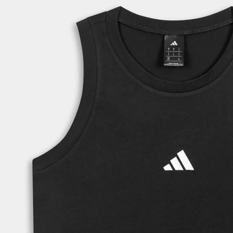 Ecco la canottiera sportiva firmata Adidas, un capo che coniuga alla perfezione stile e funzionalità. Realizzata in morbido tessuto 100% cotone, questa canottiera offre una vestibilità regular che garantisce libertà di movimento e comfort durante ogni attività sportiva. Il design senza maniche e lo scollo tondo la rendono ideale per gli allenamenti più intensi, permettendo al corpo di respirare anche durante le sessioni più calde. Il colore nero aggiunge un tocco di versatilità, facendola abbinare facilmente con pantaloncini sportivi o tute da jogging. Perfetta per chi cerca un capo che non solo risponda alle esigenze di performance, ma che rappresenti anche una scelta di stile casual e moderno per il tempo libero. Una soluzione ideale per gli sportivi dinamici e attenti al look.