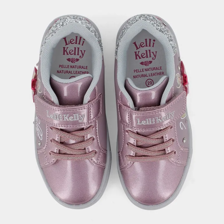 Sneaker a marchio Lelli Kelly con velcro e lacci elastici. Questa scarpa è impreziosita da una decorazione a strappo a tema ballerina e dalle luci nella tomaia che la rende la scarpa perfetta per le piccole fashioniste