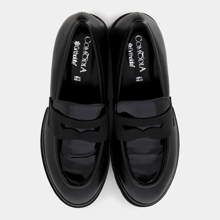 Scopri l’eleganza senza tempo dei mocassini zeppa COMODIA, perfetti per valorizzare il tuo stile classico con un tocco di modernità. Realizzati in sintetico sia all’esterno che all’interno, garantiscono una lunga durata e un comfort superiore. La soletta in pelle aggiunge un tocco di lusso e comodità, mentre il sottopiede OrthoLite® assicura un sostegno ideale per tutto il giorno. Made in Italy, questi mocassini sono sinonimo di qualità e raffinatezza. L’altezza della zeppa di 5 cm dona un sollevamento elegante senza compromettere la comodità. Ideali per essere abbinati a un paio di pantaloni a sigaretta o a una gonna midi, questi mocassini completano perfettamente un outfit da ufficio o una serata informale mantenendo sempre uno stile impeccabile.