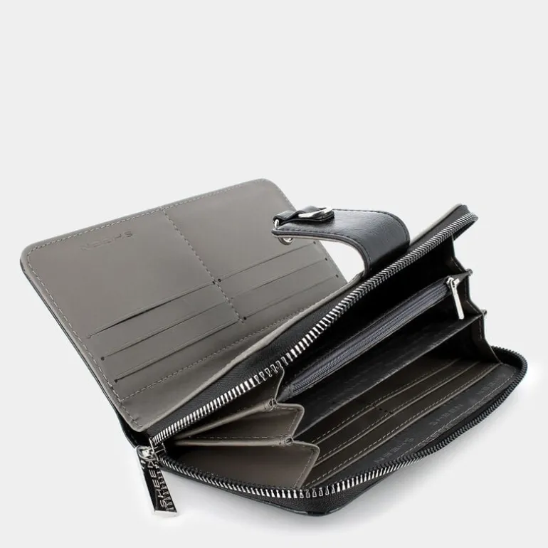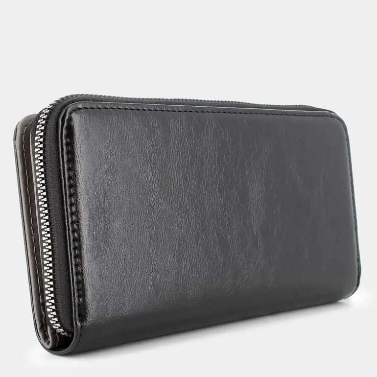 Elegante e sofisticato, il portafoglio Sheen nero è l’accessorio perfetto per la donna moderna che apprezza il tocco di classe nel quotidiano. Realizzato con materiali sostenibili, questo Eco Amico® si distingue per la sua fodera in PET riciclato. Con il suo design zip around, offre praticità e sicurezza, mentre la lucentezza del naplak e i dettagli in metallo aggiungono un tocco di glamour. All’interno, troverai una struttura ben organizzata con un portamonete, portatessere e una pratica patta per tenere tutto in ordine e a portata di mano. Questo portafoglio è la fusione perfetta tra stile, funzionalità e rispetto per l’ambiente, adatto a chi ricerca accessori eco-consapevoli senza rinunciare all’eleganza.