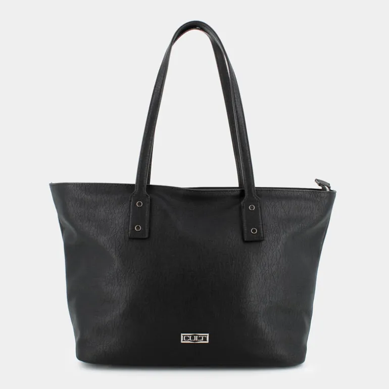 Scopri il fascino intramontabile della borsa CULT in nero, un accessorio versatile che unisce la praticità al design sofisticato. Ideale per un uso casual, questa borsa è pensata per valorizzare il tuo stile personale. Con dimensioni generose di 34.5 cm in altezza, 28 cm in lunghezza e 16 cm in ampiezza, offre ampio spazio per i tuoi effetti personali, rendendola perfetta per lo shopping e le tue giornate movimentate. L’elegante logo frontale in metallo le conferisce un tocco distintivo e raffinato, ideale per chi desidera un accessorio esclusivo. Realizza il tuo look con questa borsa iconica, che aggiungerà un elemento di classe e funzionalità al tuo guardaroba quotidiano.