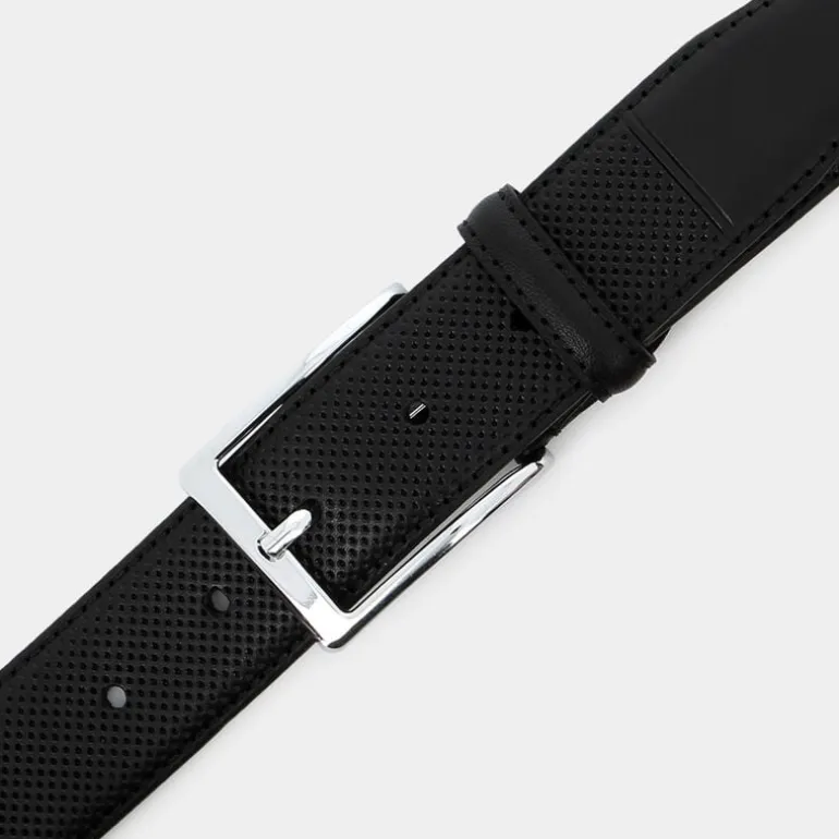 Raffinatezza e dettagli esclusivi caratterizzano la cintura in pelle traforata Fratelli Pietrini, una vera opera d’arte del Made in Italy. Il nero profondo della pelle si abbina perfettamente con la fibbia squadrata in acciaio lucido, creando un accessorio che eleva qualsiasi outfit classico. Con un design raffinato e una larghezza di 3.5 cm, questa cintura si distingue per l’eleganza e la versatilità. La pelle traforata non soltanto aggiunge un tocco di originalità e traspirabilità ma sottolinea anche la maestria artigianale dei Fratelli Pietrini. Il sistema di regolazione, dotato di 5 fori e la possibilità di accorciamento, assicura una vestibilità personalizzata e confortevole. Scegliere questa cintura significa sottolineare il proprio gusto impeccabile e la propensione per accessori di qualità superiore.