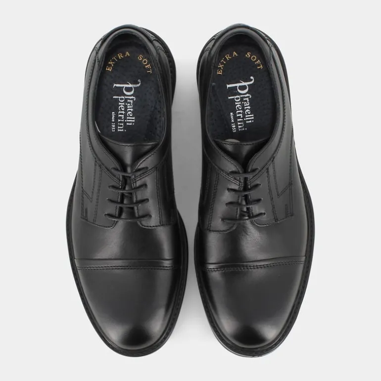 Fratelli Pietrini propone per il progetto Eco Amico queste stringate da uomo realizzate in materiali ecologici di nuova generazione: la tomaia è in pelle sostenibile, il sottopiede è in Ortholite, uno speciale rivestimento recuperato dalla plastica riciclata. La suola, invece, è costituita da gumtouch ammortizzato, un materiale d’avanguardia che garantisce comfort, morbidezza e protezione dagli urti. La linea pulita ed essenziale della scarpa da uomo rende questa calzatura ideale per un’occasione formale, come una serata elegante. Il look total black è neutro, sobrio, adatto a tutti gli outifit: quando classe, eleganza e rispetto per l’ambiente si incontrano, nascono le idee esclusive firmate by Fratelli Pietrini.