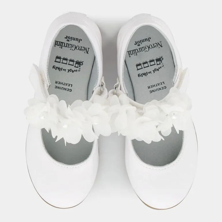 Cattura l’essenza dei primi passi in grande stile con queste scarpe ballerina firmate NERO GIARDINI, pensate per il comfort e l’eleganza dei più piccoli. Queste scarpe sono dotate di applicazioni in vernice luminosa e un pratico sistema di chiusura a velcro che combina facilità d’uso e un tocco chic. L’interno e la soletta in pelle assicurano una morbidezza ideale, proteggendo i piedini delicati durante ogni nuova avventura. Realizzate con la maestria artigianale italiana, queste ballerine sono perfette per ogni occasione, dalla quotidianità alle cerimonie.Abbinale a un vestitino leggero e accessori delicati per un outfit incantevole che esalta il loro primo passo verso la crescita.