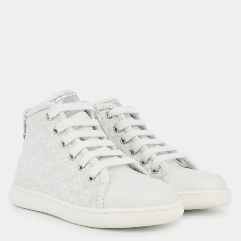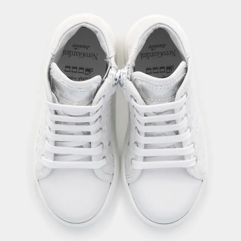 Un tocco di eleganza per i primi passi delle piccole! Queste scarpe di Nero Giardini, realizzate in Italia, combinano pelle e tessuto per l’esterno e presentano una fodera e una soletta in morbida pelle, garantendo comfort al piedino. Il design è arricchito da una pratica zip laterale interna e lacci, per una chiusura facile e sicura. Caratterizzate da un tacco a zeppa che dona un leggero slancio, sono perfette per un look casual ma curato nei dettagli. Ideali per essere abbinate a un abitino in cotone ed una giacchetta leggera, doneranno un tocco di stile ad ogni passeggiata. Queste scarpe sono pronte per accompagnare ogni avventura con eleganza e qualità made in Italy.