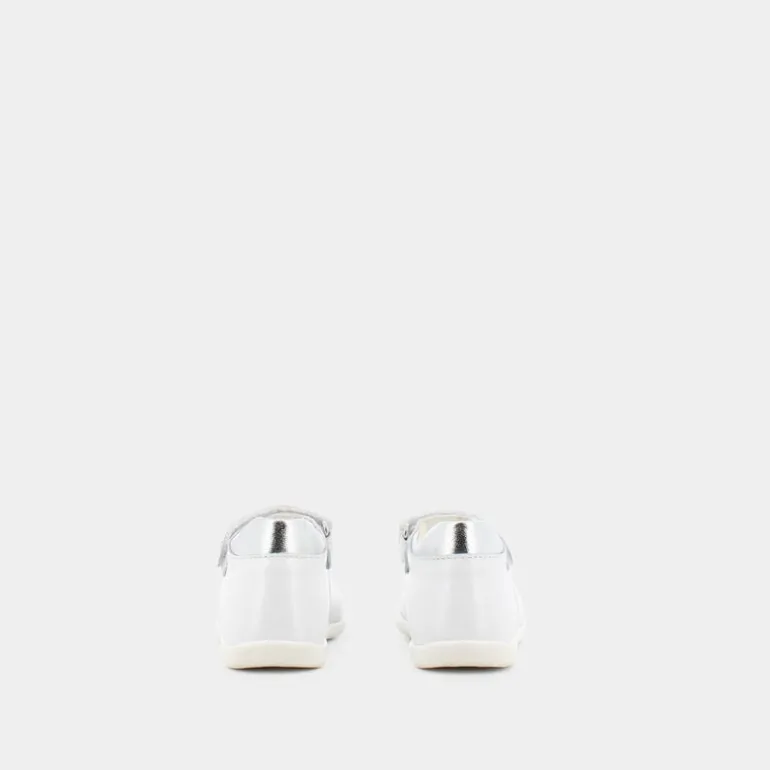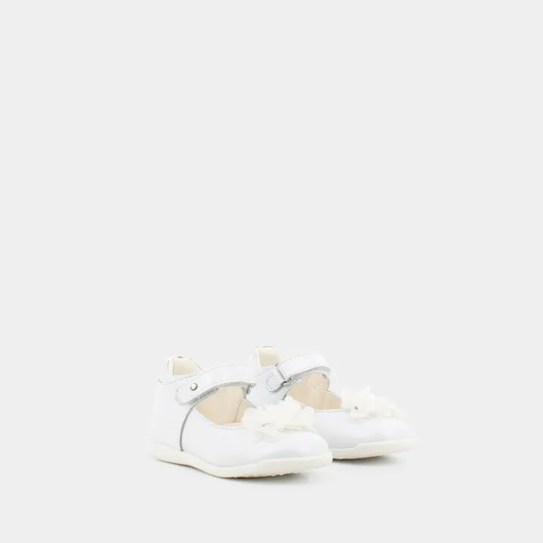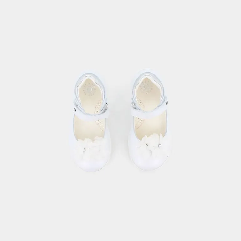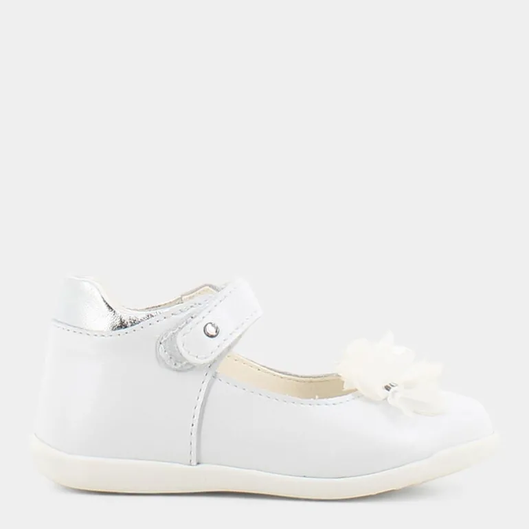 Canarini Gialli Primi Passi, presente nel progetto Eco Amico, propone questa deliziosa scarpina per bambina satinata, declinata in una nuance luminosa, un bianco candido. La tomaia è realizzata in particolari materiali compatti, in pelle ecologica di nuova generazione: nonostante sia un materiale sintetico riproduce lo stesso effetto vellutato e carezzevole della pelle originale, garantendo una sensazione di morbidezza assoluta sul piede della piccola. La suola, ammortizzante, slancia la camminata e permette una postura corretta. Infine, il dettaglio fiorito sul dorso del piedino e il cinturino grazioso completano il design della scarpetta per i primi piccoli passi della bimba, talmente dolce che andrà a ruba! Perfetta per cerimonie come matrimoni e battesimi.